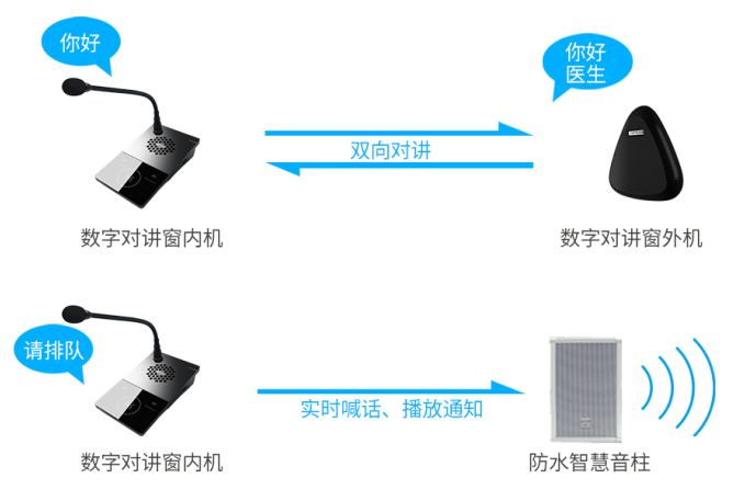 即醫(yī)護(hù)采樣人員在采樣窗口既能與被采樣人順暢溝通,又能完成喊話廣播維持艙外排隊(duì)秩序、播放通知。