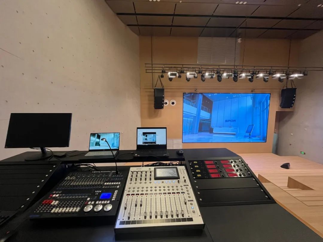 這間階梯教室是智能會(huì)議室典型項(xiàng)目,主要用于產(chǎn)品報(bào)告會(huì)、新聞發(fā)布會(huì)使用,所以既要考慮實(shí)用性,也要兼具美觀效果,舞臺(tái)燈光的特別設(shè)計(jì)能增強(qiáng)舞臺(tái)人物及景物的立體感,烘托舞臺(tái)氛圍,搭配擴(kuò)聲系統(tǒng)實(shí)現(xiàn)以光助聲,聲光配合,讓現(xiàn)場觀眾達(dá)到最佳視聽享受。