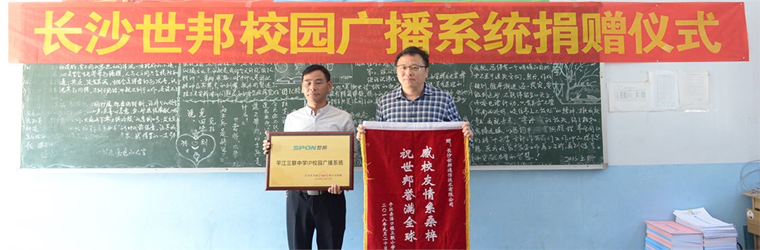 2018年世邦通信向岳陽(yáng)平江三聯(lián)中學(xué)捐助學(xué)校廣播系統(tǒng)