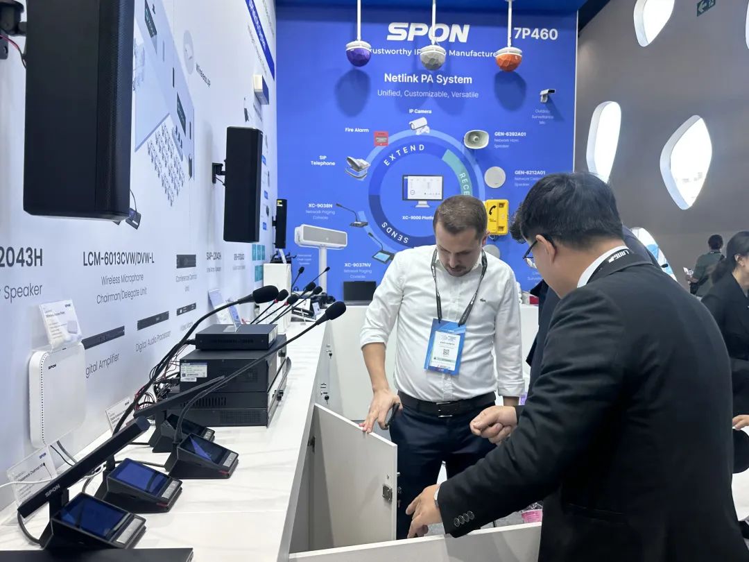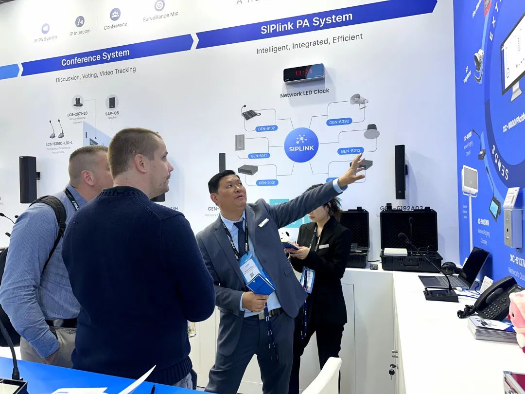 世邦通信多年來深耕音頻研發(fā)細分領(lǐng)域,此次展會,重點展示Mosque Audio System(清真寺廣播系統(tǒng))、Conference System(會議系統(tǒng))、SIPlink PA System(SIPlink廣播系統(tǒng))、Netlink PA System(Netlink廣播系統(tǒng))等,輕量化系統(tǒng),部署簡單、擴展靈活、穩(wěn)定可靠,適用于教育、金融、寺廟、商貿(mào)、樓宇酒店等需要廣播、對講和會議發(fā)言的音頻使用場景。展會現(xiàn)場體驗產(chǎn)品擴聲效果和輕量化系統(tǒng)部署,收獲了眾多海外客戶的關(guān)注與認可。