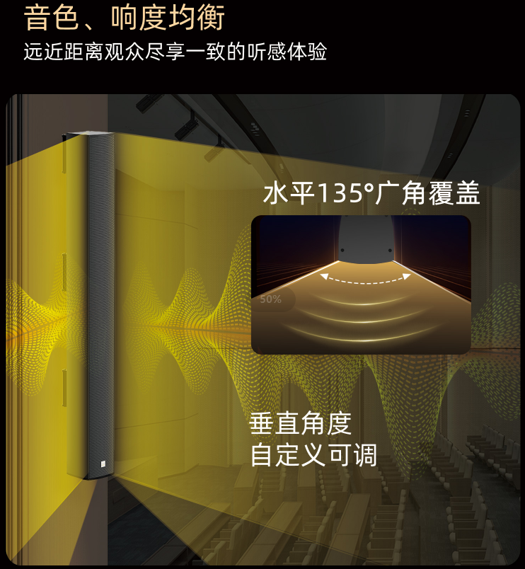 如果說建聲是“修路”,擴聲就是“造車”。路(聲場)修得再平整,若沒有好車(音響),聲音依然無法從主席臺傳至最后一排。在吸音優(yōu)化后的良好聲學(xué)環(huán)境中,通過專業(yè)音箱、調(diào)音設(shè)備將聲源(如話筒)信號均勻覆蓋全場,彌補自然聲傳播的衰減問題。但擴聲無法解決聲學(xué)環(huán)境本身的缺陷,若先側(cè)重擴聲而忽視吸音,反而可能放大反射聲和噪聲,加劇聽覺混亂。因此,吸音是保障聲學(xué)質(zhì)量的前提,擴聲是實現(xiàn)聲音均勻覆蓋的補充,二者結(jié)合才能滿足報告廳的聲學(xué)需求。能量傳遞與均勻覆蓋 擴聲系統(tǒng)的首要任務(wù)是提供足夠的聲壓級,解決自然聲衰減問題,確保全場聽眾都能獲得足夠的響度。