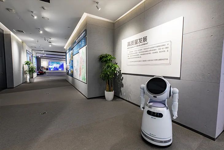 室內(nèi)由“序廳”、“自然山水”、“歷史文化名城”、“總體規(guī)劃”、“高質(zhì)量發(fā)展”、“高品質(zhì)生活”、“內(nèi)陸開(kāi)放高地”、“山清水秀美麗之地”8個(gè)主題展區(qū),以及輔助展區(qū)組成,目前已對(duì)外展示開(kāi)放。