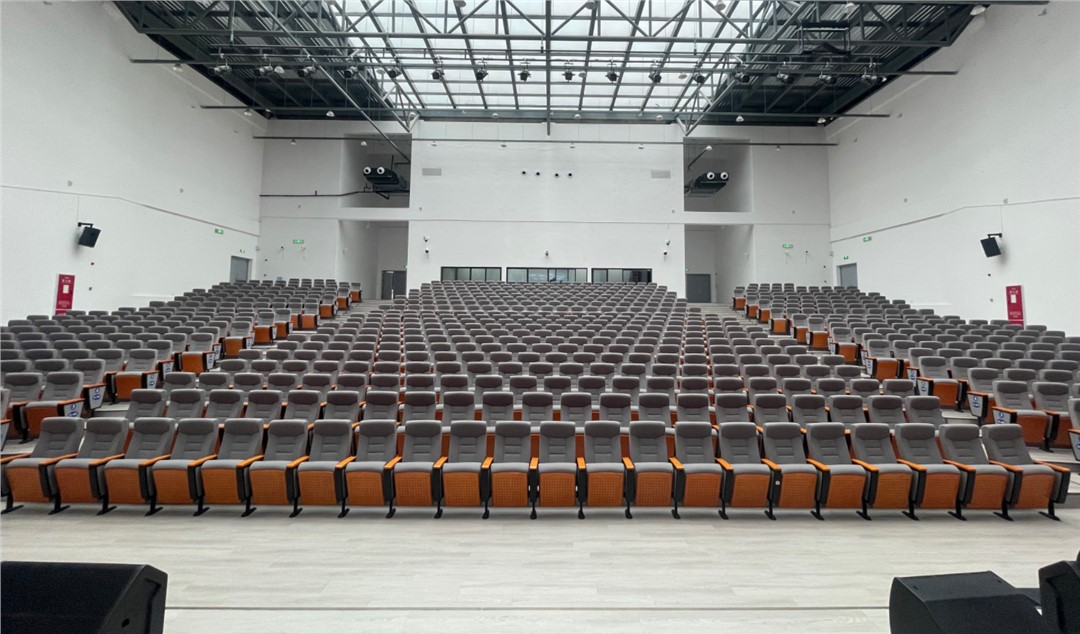 500人報(bào)告廳縱深較長,單一的點(diǎn)聲源無法滿足均勻覆蓋。本方案采用“主擴(kuò)+超低+返聽+補(bǔ)聲”的立體陣列布局。