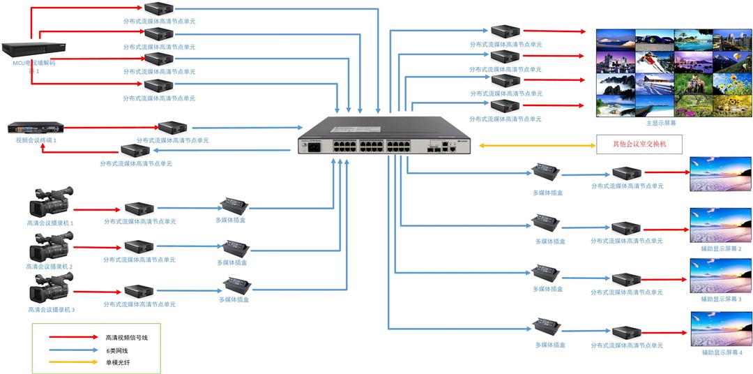 什么是KVM分布式系統(tǒng)? KVM分布式系統(tǒng)(Keyboard, Video, Mouse),是一種基于IP網(wǎng)絡(luò)架構(gòu)的技術(shù)。不同于傳統(tǒng)模擬KVM受限于線纜長(zhǎng)度和端口數(shù)量,分布式系統(tǒng)將音視頻信號(hào)和控制信號(hào)數(shù)字化,通過(guò)編解碼器(節(jié)點(diǎn))在標(biāo)準(zhǔn)的千兆或萬(wàn)兆網(wǎng)絡(luò)中傳輸。它將信號(hào)源(服務(wù)器/工作站)與操作端(顯示器/鍵鼠)在物理上徹底分離,構(gòu)建了一個(gè)高度靈活的信息交互平臺(tái)。